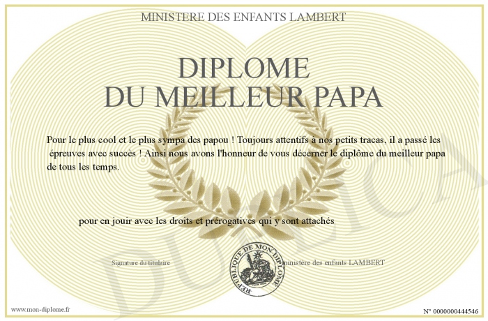 Envoyez par email votre Diplôme du meilleur papa personalisé