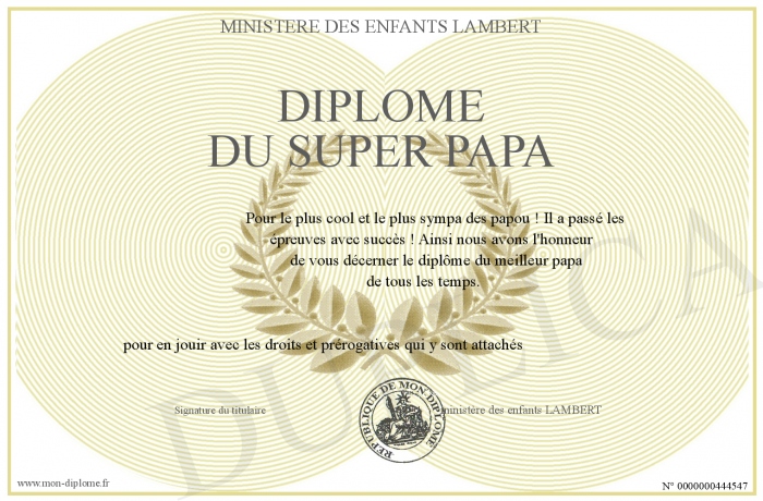 Envoyez par email votre Diplôme du super papa personalisé