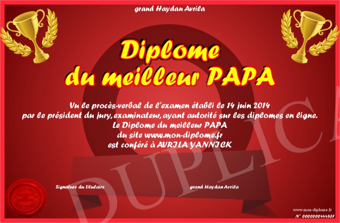 Envoyez par email votre Diplôme du meilleur PAPA personalisé
