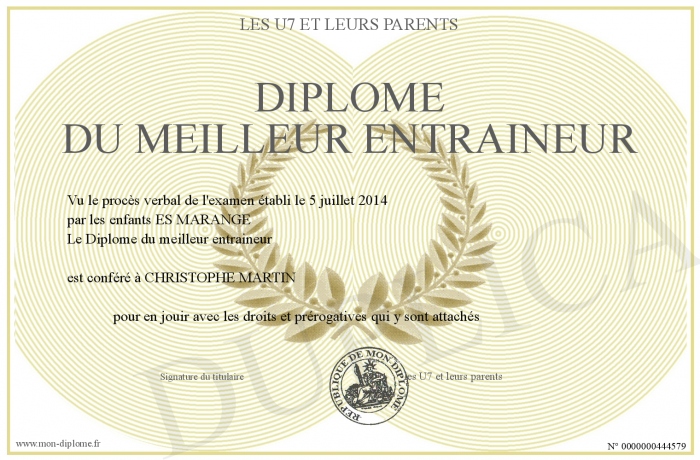 Envoyez par email votre Diplôme du meilleur entraineur personalisé