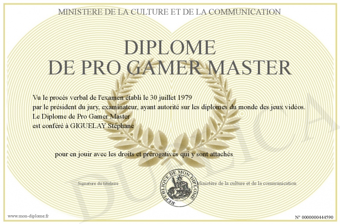 Envoyez par email votre Diplôme de Pro Gamer Master personalisé