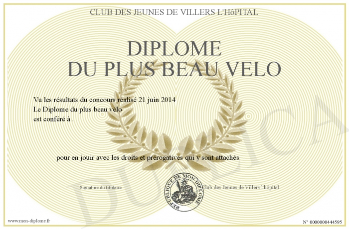 Envoyez par email votre Diplôme du plus beau vélo personalisé