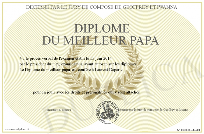 Envoyez par email votre Diplôme du meilleur papa personalisé