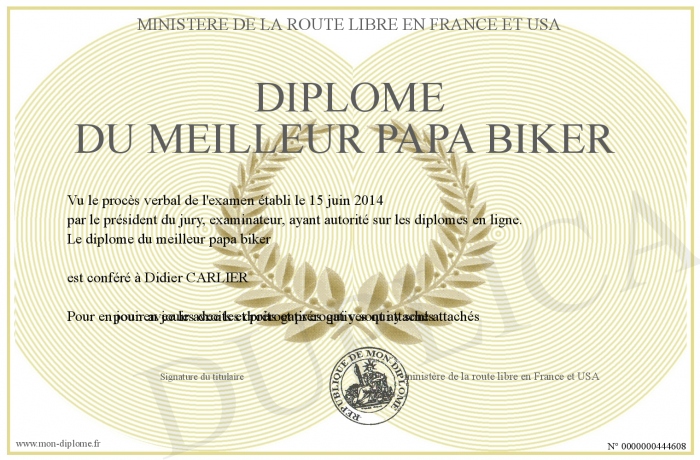 Envoyez par email votre Diplôme du meilleur papa biker personalisé