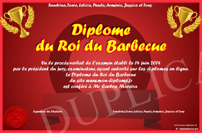 Envoyez par email votre Diplôme du Roi du Barbecue personalisé