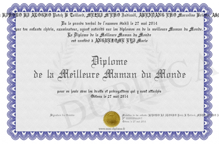 Envoyez par email votre Diplôme de la Meilleure Maman du Monde personalisé