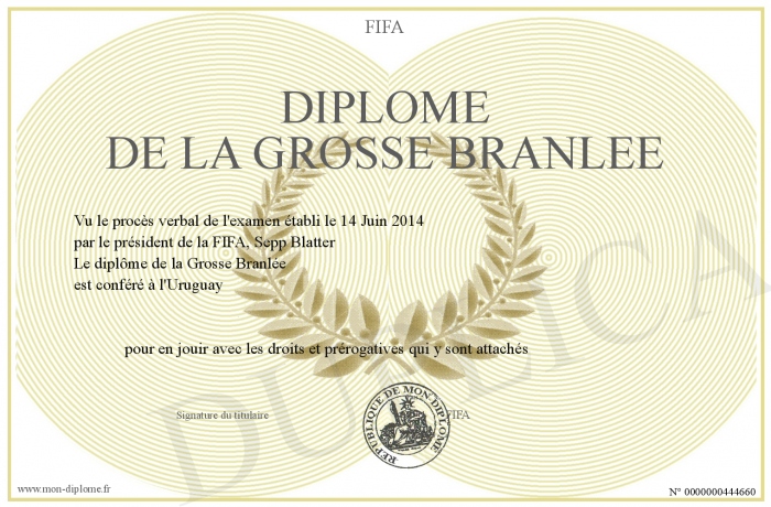 Envoyez par email votre Diplôme de la Grosse Branlée personalisé