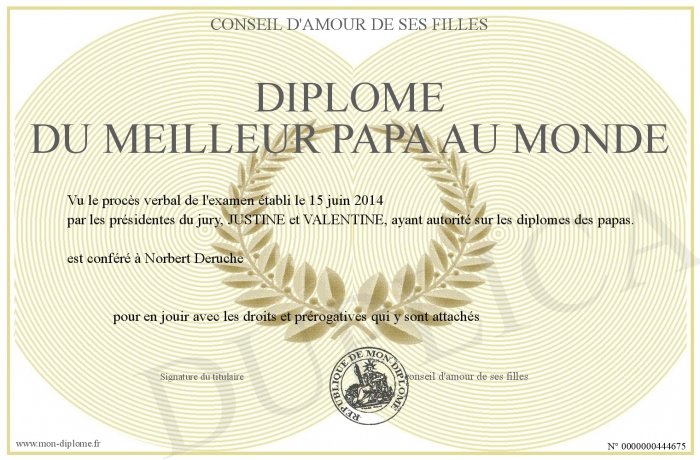 Envoyez par email votre diplôme du meilleur papa au monde personalisé