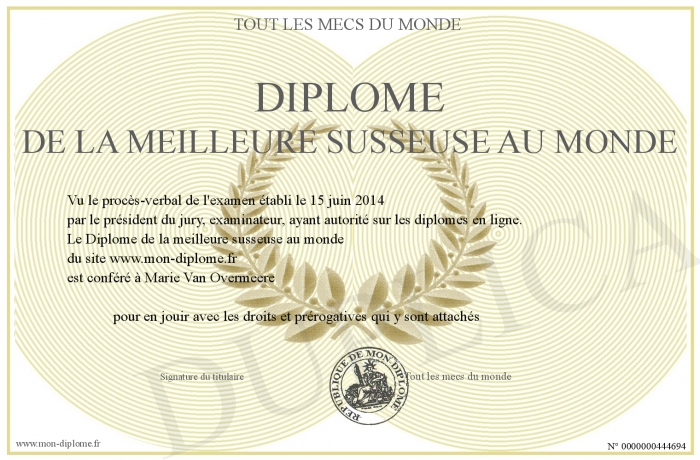 Envoyez par email votre Diplôme de la meilleure susseuse au monde personalisé