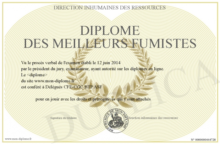 Envoyez par email votre Diplôme des meilleurs fumistes personalisé