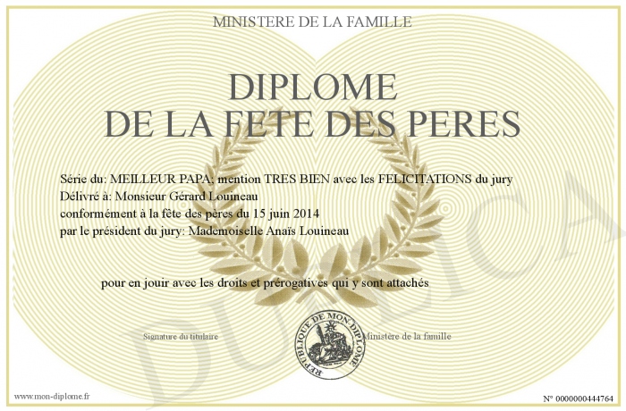 Envoyez par email votre Diplôme de la fete des peres personalisé