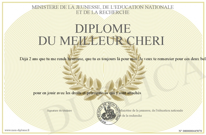 Envoyez par email votre Diplôme du meilleur cheri personalisé