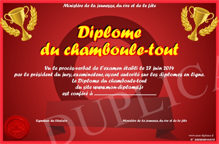 Envoyez par email votre Diplôme du chamboule-tout personalisé
