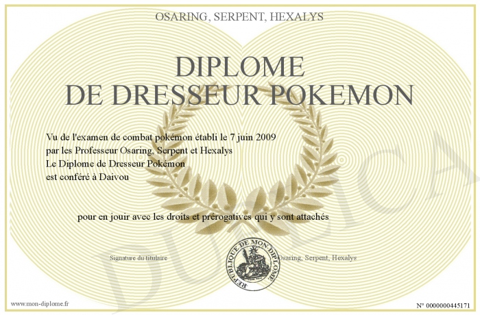 Envoyez par email votre Diplôme de Dresseur Pokémon personalisé