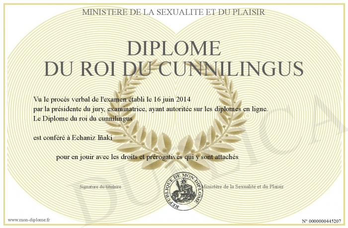 Envoyez par email votre Diplome du roi du cunnilingus personalisé