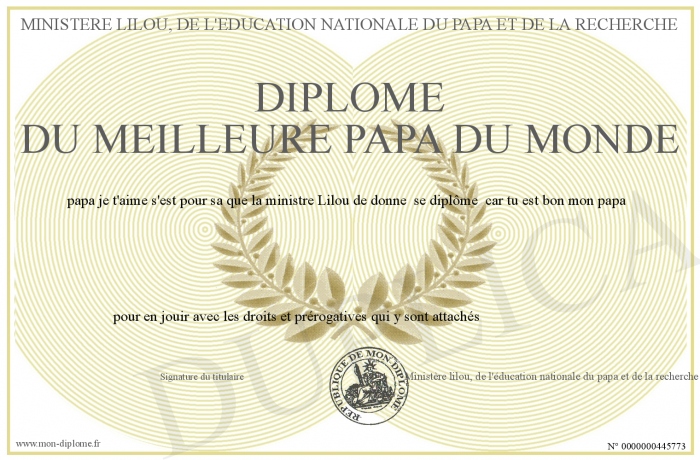 Envoyez par email votre Diplôme du meilleure papa du monde personalisé
