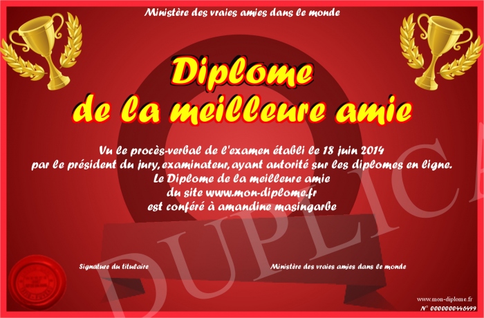 Envoyez par email votre Diplôme de la meilleure amie personalisé