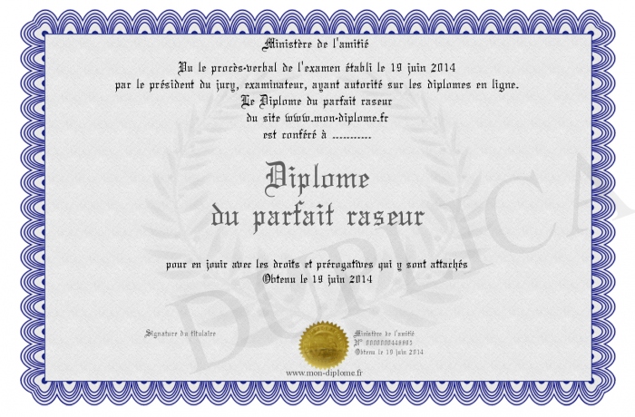 Envoyez par email votre Diplôme du parfait raseur personalisé