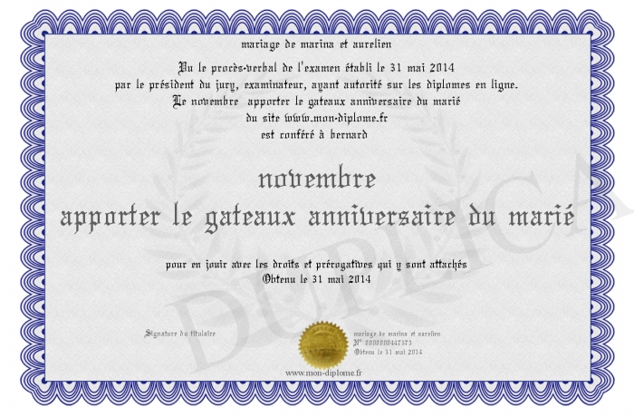 Envoyez par email votre novembre apporter le gateaux anniversaire du marié personalisé