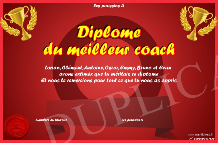 Envoyez par email votre Diplôme du meilleur coach personalisé