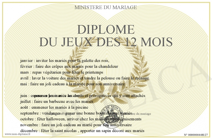 Envoyez par email votre Diplôme du jeux des 12 mois personalisé