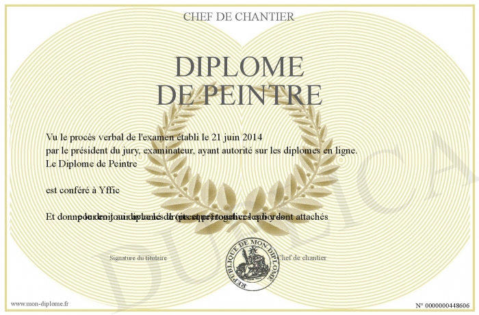 Envoyez par email votre Diplôme de Peintre personalisé