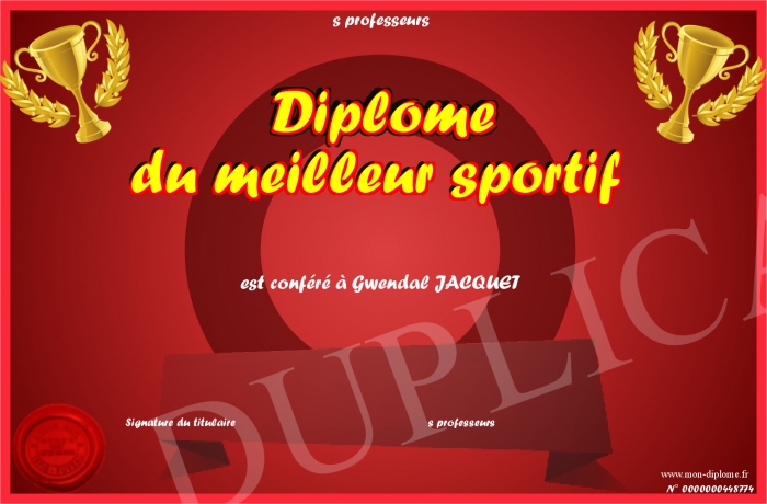 Envoyez par email votre Diplôme du meilleur sportif personalisé