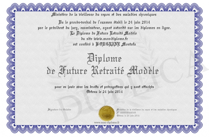 Envoyez par email votre Diplôme de Future Retraité Modèle personalisé