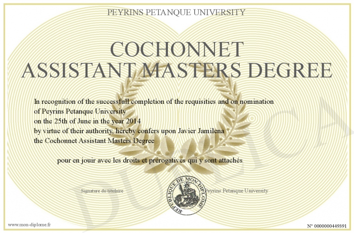 Envoyez par email votre Cochonnet Assistant Masters Degree personalisé