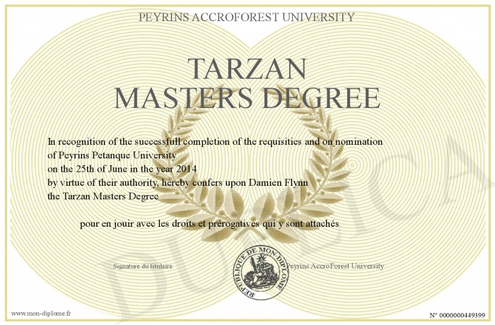 Envoyez par email votre Tarzan Masters Degree personalisé