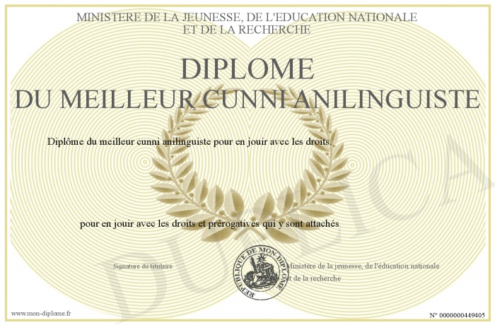 Envoyez par email votre Diplôme du meilleur cunni anilinguiste personalisé