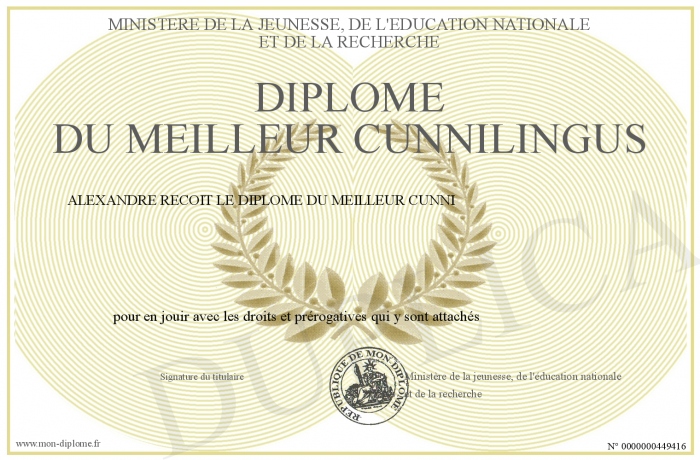 Envoyez par email votre Diplôme DU MEILLEUR CUNNILINGUS personalisé