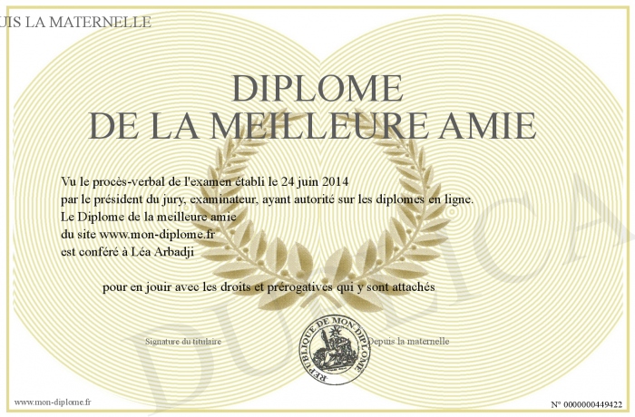Envoyez par email votre Diplôme de la meilleure amie personalisé