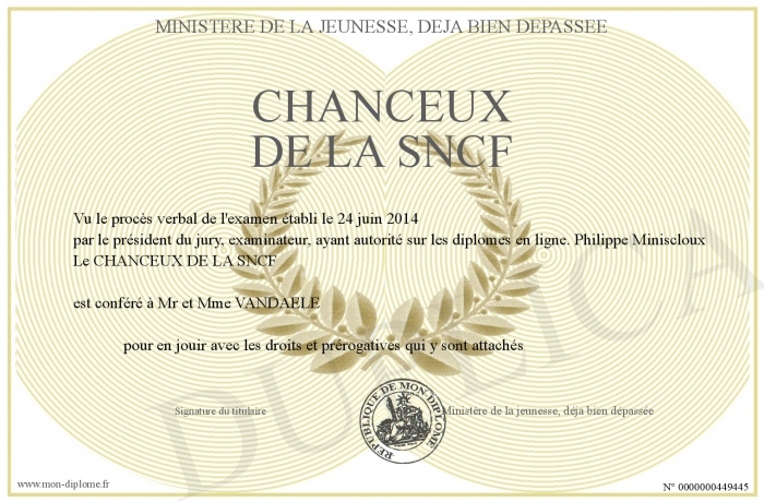 Envoyez par email votre CHANCEUX DE LA SNCF personalisé