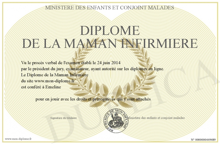 Envoyez par email votre Diplôme de la Maman Infirmière personalisé