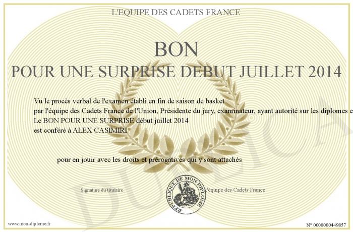 Envoyez par email votre BON POUR UNE SURPRISE début juillet 2014 personalisé