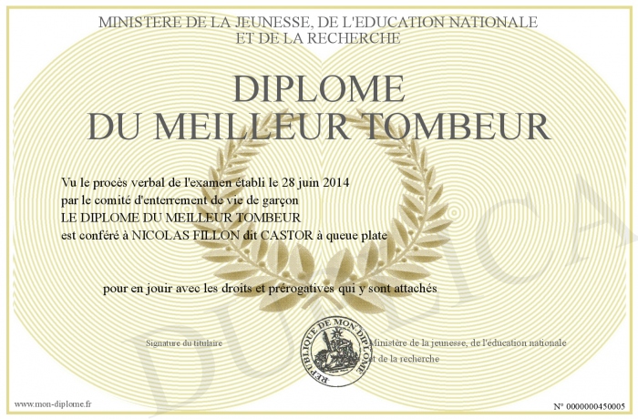 Envoyez par email votre Diplôme du meilleur tombeur personalisé