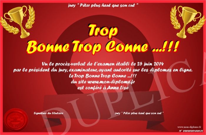 Envoyez par email votre Trop Bonne Trop Conne ...!!! personalisé