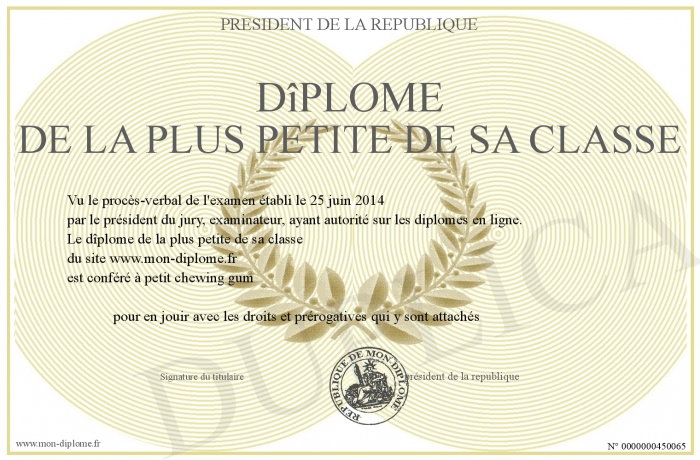 Envoyez par email votre dîplome de la plus petite de sa classe personalisé