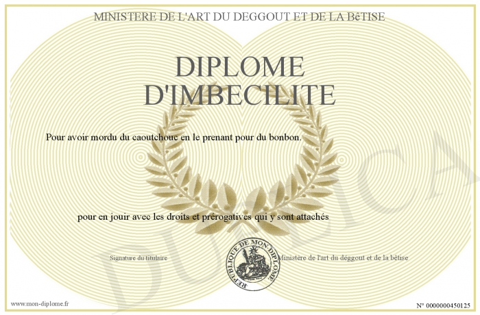 Envoyez par email votre Diplôme d'imbécilité personalisé
