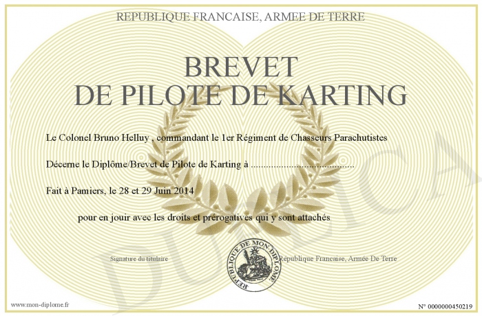 Envoyez par email votre Brevet de Pilote de Karting personalisé