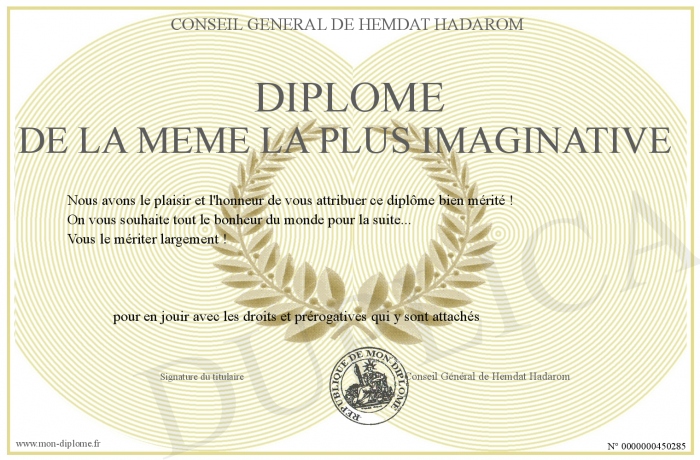 Envoyez par email votre Diplome de la mémé la plus imaginative personalisé