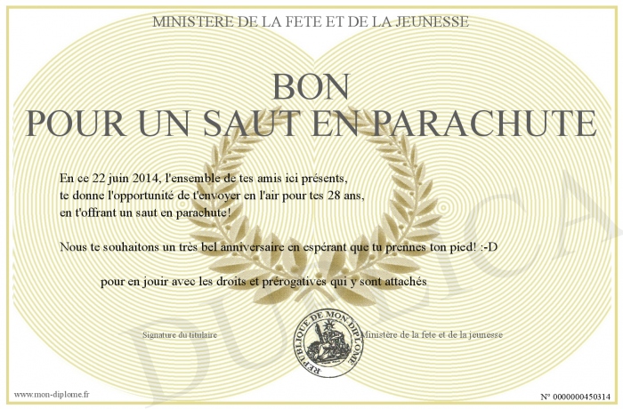 Envoyez par email votre Bon pour un saut en parachute personalisé