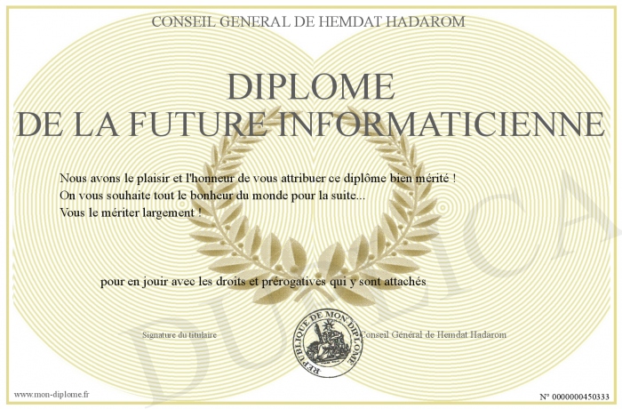 Envoyez par email votre Diplôme de la future informaticienne personalisé