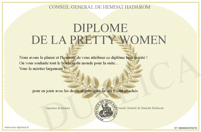 Envoyez par email votre Diplome de la Pretty Women personalisé