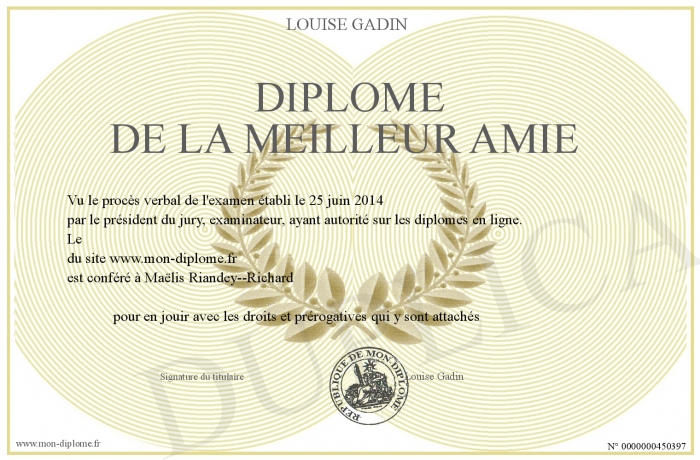 Envoyez par email votre Diplôme de la meilleur amie personalisé