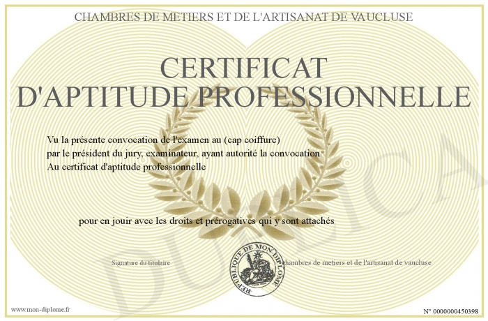 Envoyez par email votre certificat d'aptitude professionnelle personalisé
