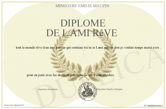 Envoyez par email votre Diplôme de l ami rêve personalisé