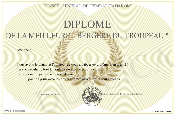 Envoyez par email votre Diplôme de la meilleure - bergere du troupeau - personalisé