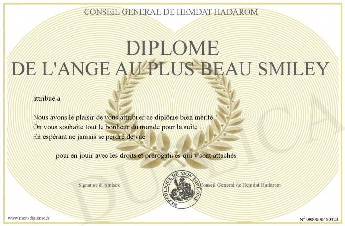 Envoyez par email votre Diplôme de l'ange au plus beau smiley personalisé